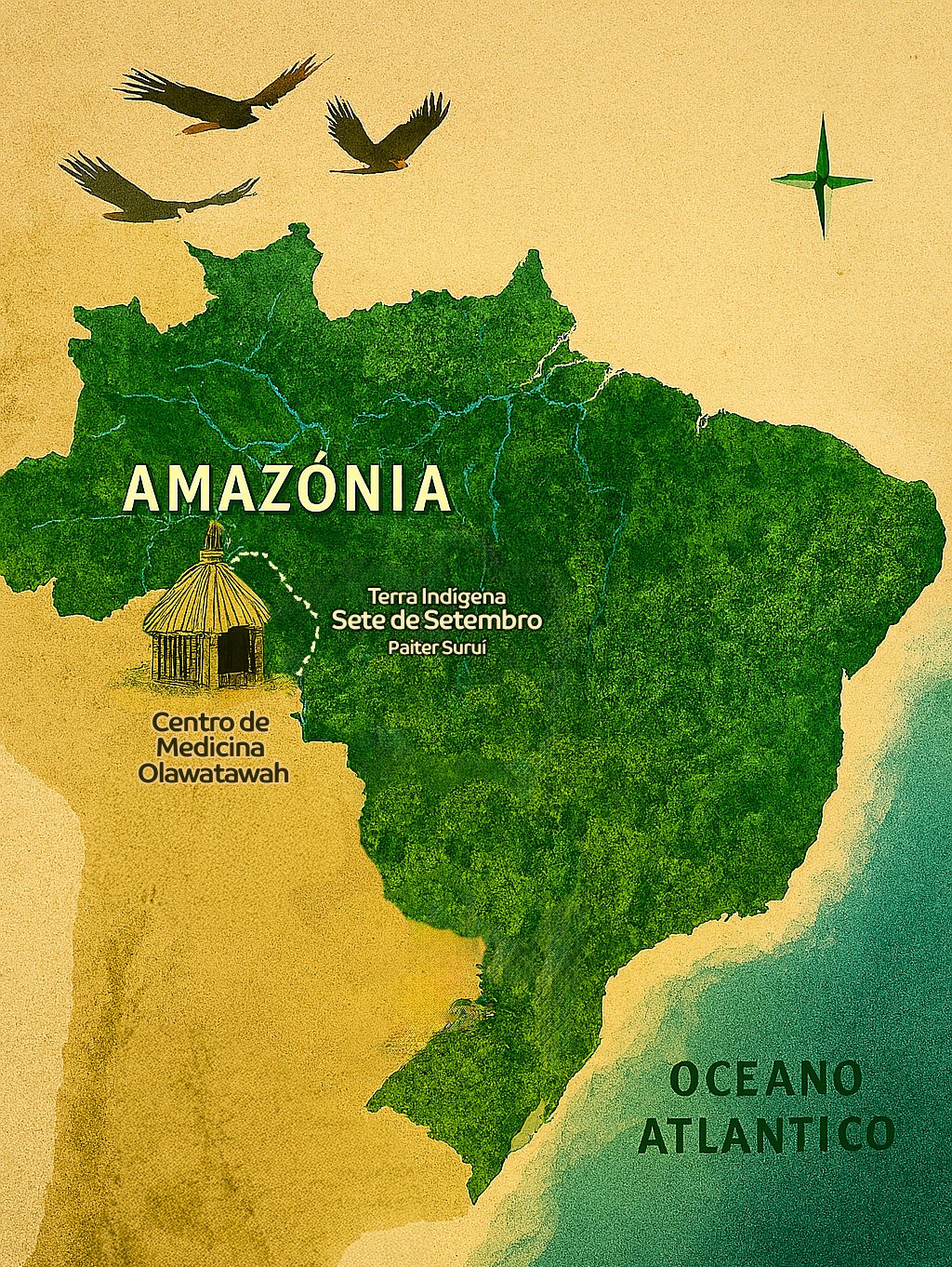 O Centro Olawatawah nasceu do sonho e da força do povo Paiter Suruí. Aqui, tradição e inovação caminham juntas para proteger a floresta, valorizar a sabedoria ancestral e criar soluções sustentáveis para as próximas gerações. Localizado em Cacoal, Rondônia, o Centro é um ponto de encontro entre a comunidade, visitantes e parceiros que acreditam em um futuro mais verde e justo.